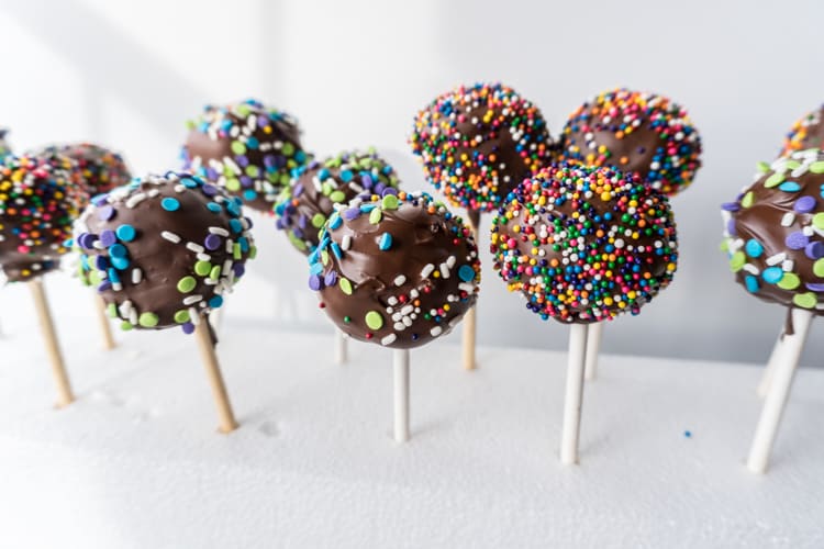 - Bring the sprinkles in the scene and scatter then on the chocolate cake pops in an unplanned manner.